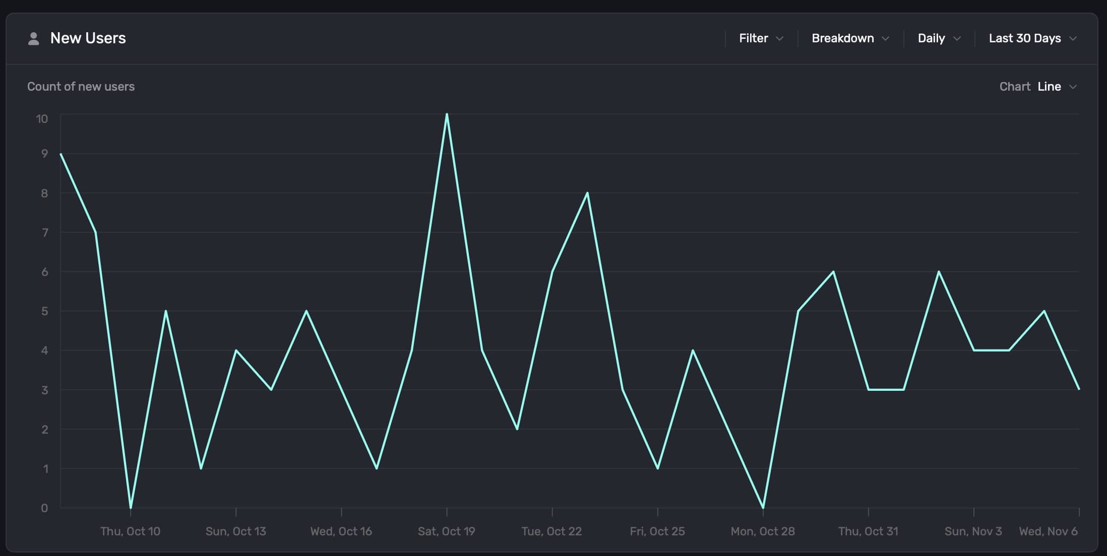 To break down data in a chart, click the Breakdown toggle at the top right: