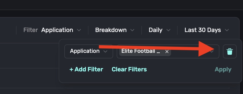 To remove an individual filter, click on the trash can icon on the trailing side of it: