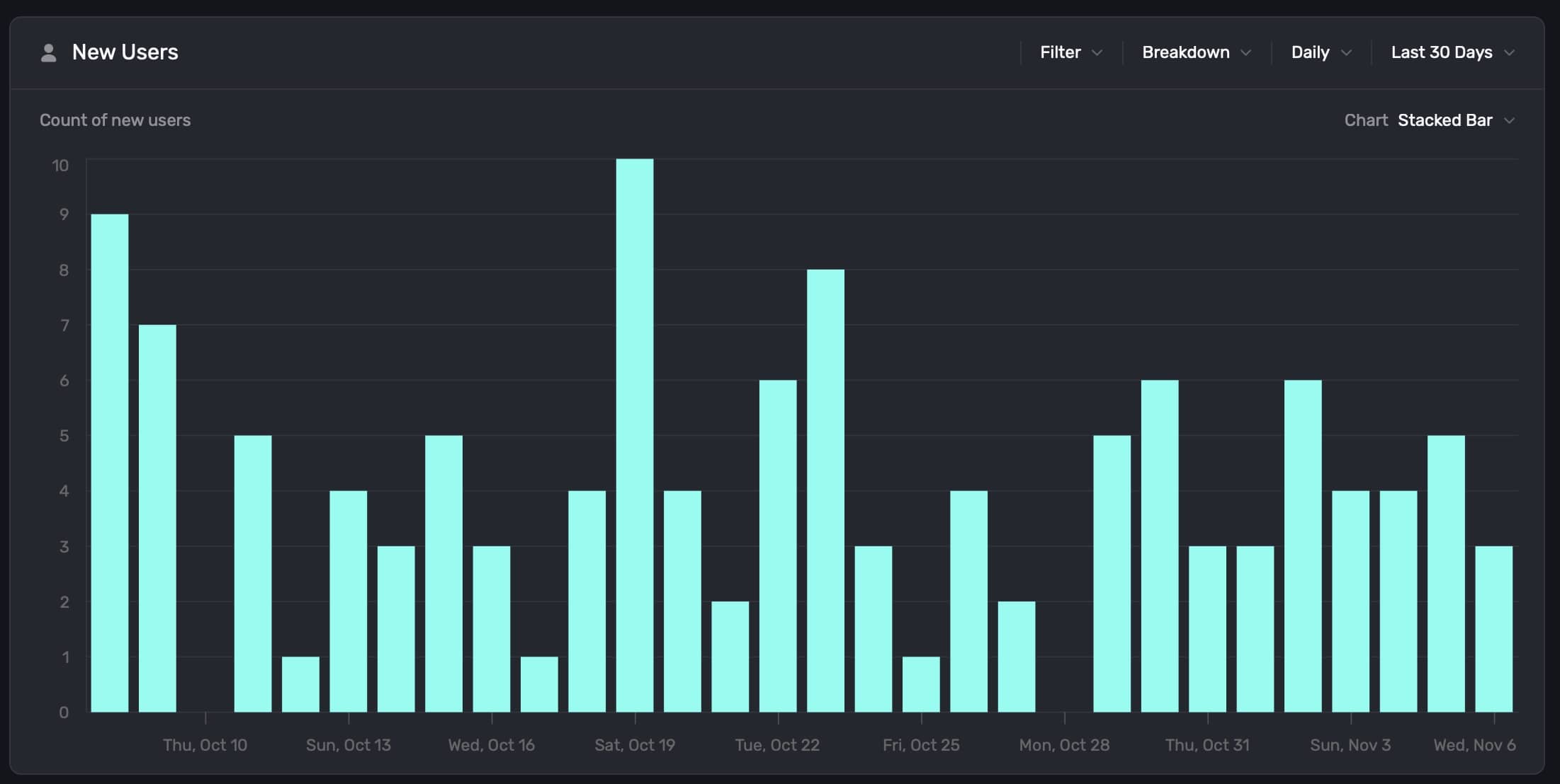 You can toggle the chart format between Stacked Area, Line, Stacked Bar, or Bar. Here is the same chart data in each format: