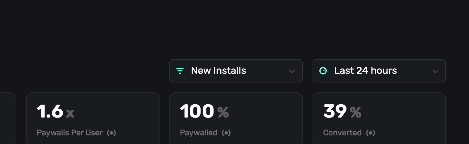 Paywalls Per UserThe percentage of paywalls shown per user. Remember, each user may see more than one paywall per session.