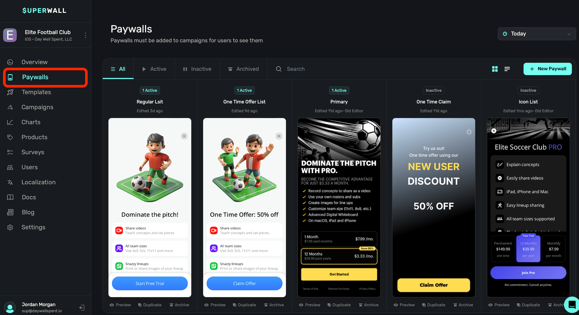 Below each paywall, you can also Preview, Duplicate or Archive it.
