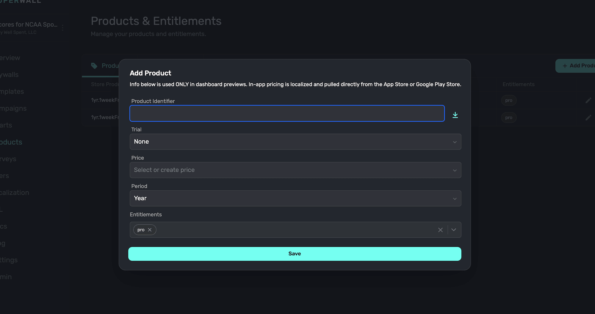 Add your existing products from their respective storefront, such as the App Store or the Google Play Store, to an app so they can be used in one or more paywalls. For adding Stripe products, please view this doc.