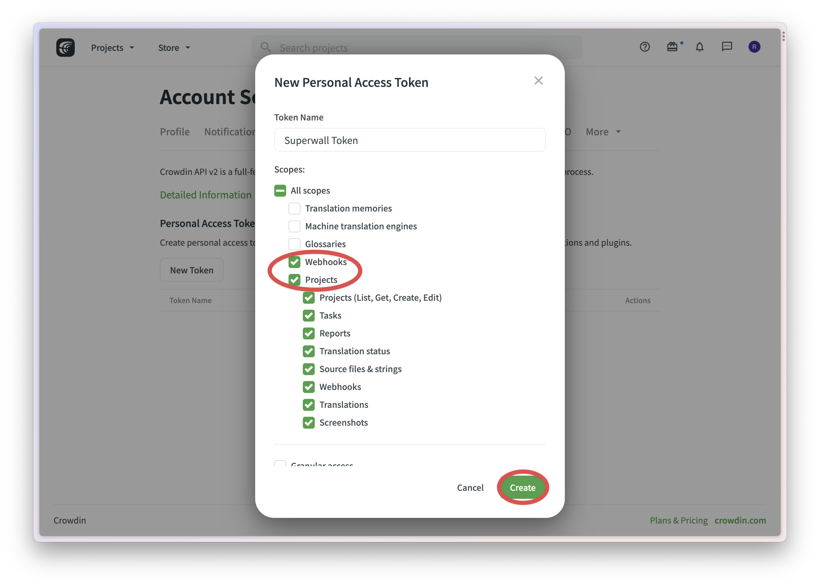 Once you've got the token, head on over to Superwall and select Settings -> Localization. Choose Crowdin from the dropdown and enter your API key.