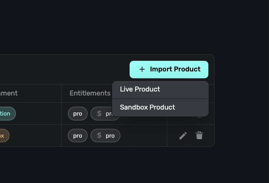 If you're part of the Paddle beta, the import flow mirrors Stripe. Choose Paddle as the provider when importing, then select the product to pull in its data. Paddle sandbox and live products are labeled so you can keep environments separate. For more specifics on Paddle credentials, see Configuring Paddle Keys and Settings.