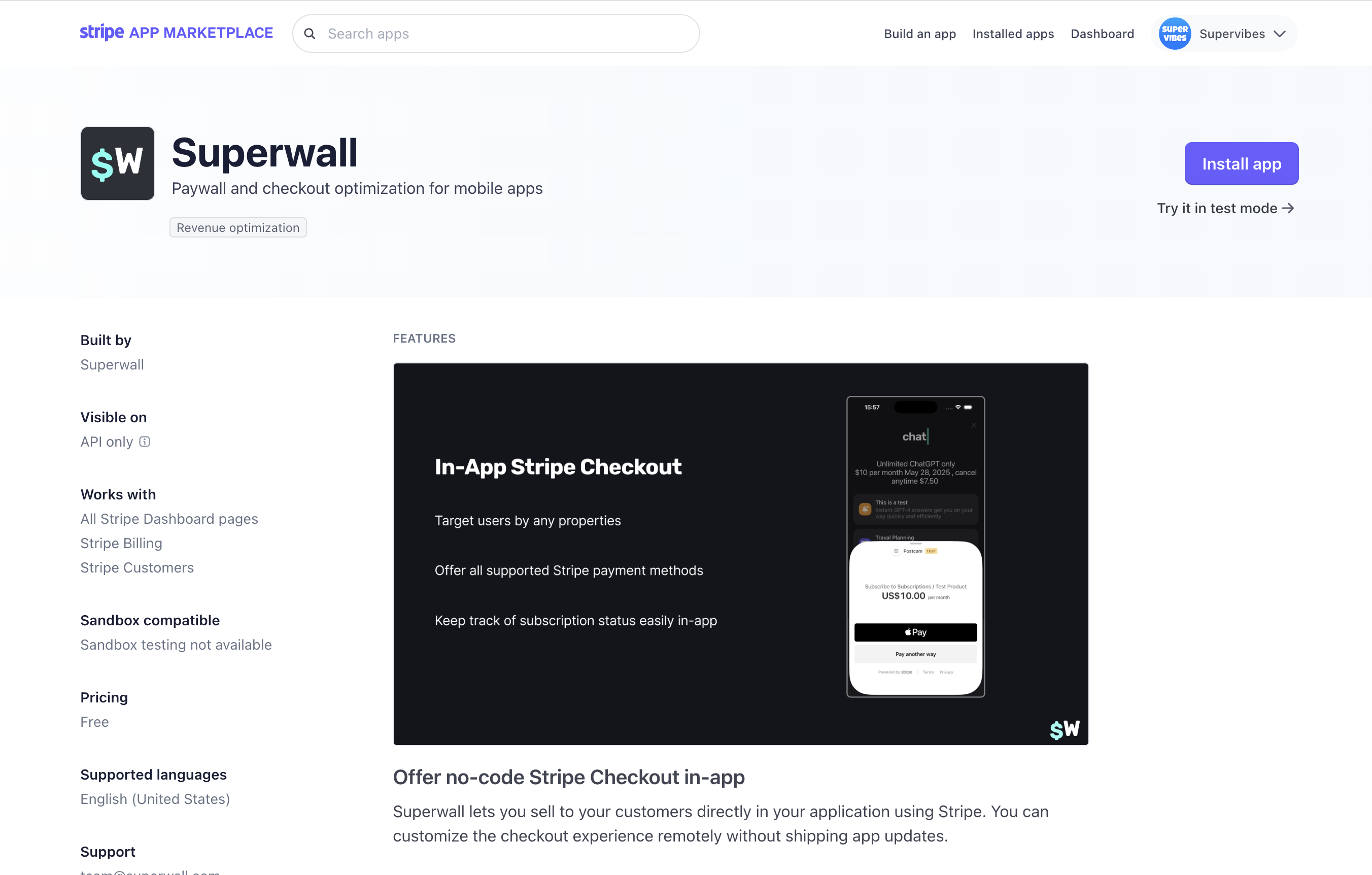 Visit the Superwall app on Stripe Marketplace: