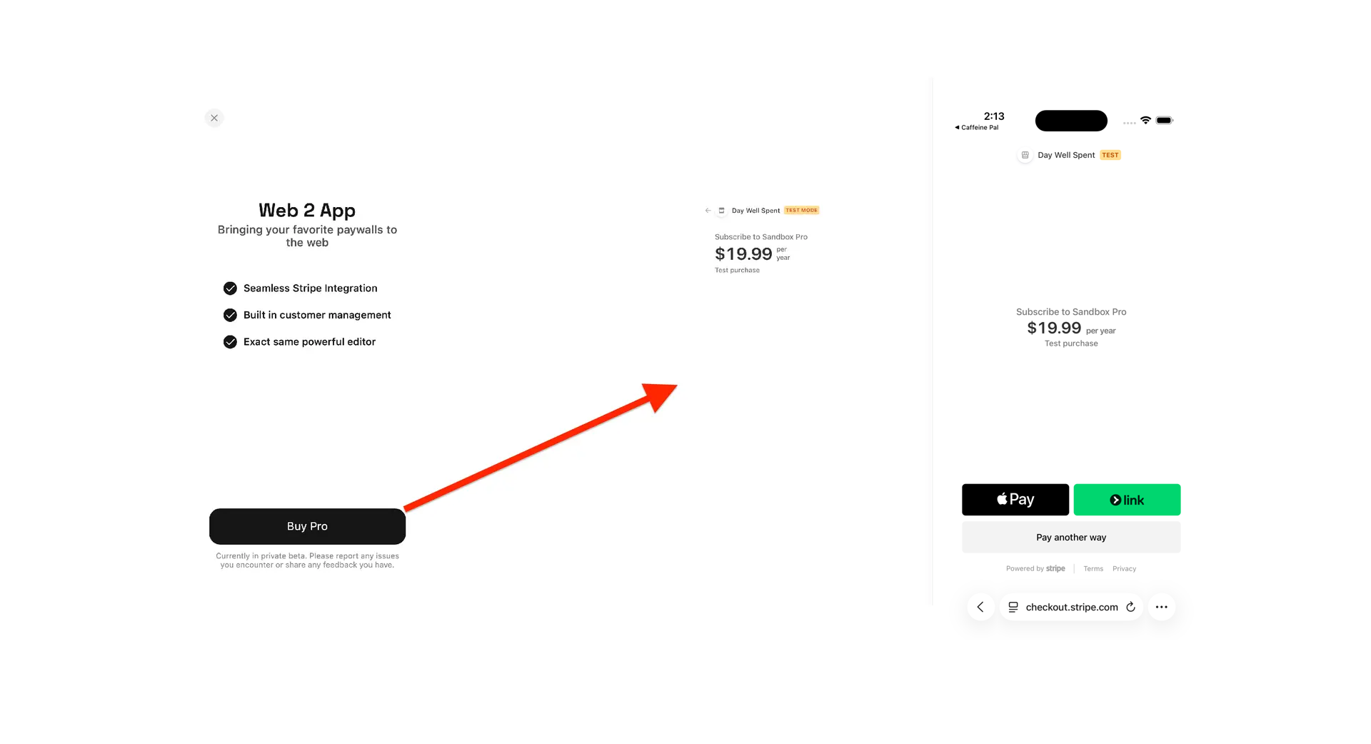 - Visit the paywall URL and checkout.
